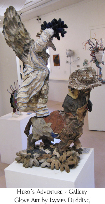 work sites, next to garbage bins and anywhere else he spotted them.  He didn't have a purpose in gathering worn out gloves - Jaymes' usual media are clay and ceramics -