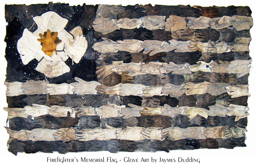 years since, he has created around fifty sculptures using old gloves.  His proudest and most famous of these unique sculptures is "Firefighter's Memorial Flag," a tribute